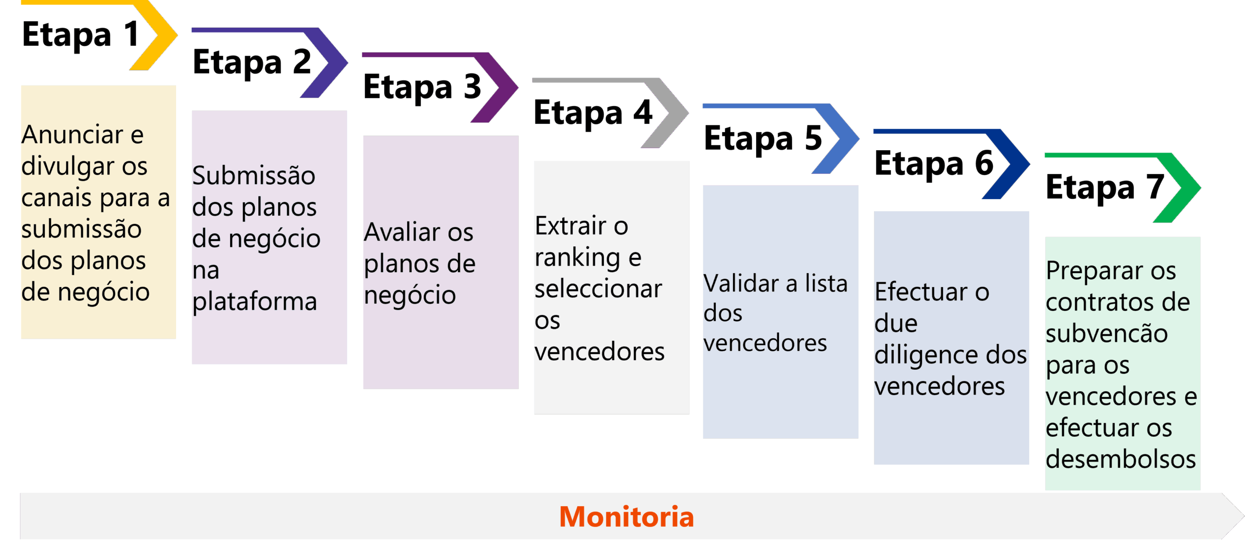 A competicão de planos de negócios no âmbito das Ligações de Consumo obedecerá as seguintes etapas